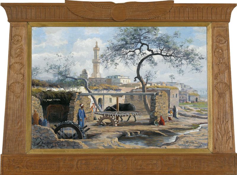 Ländliche Szenerie mit einer Moschee bei Kairo.