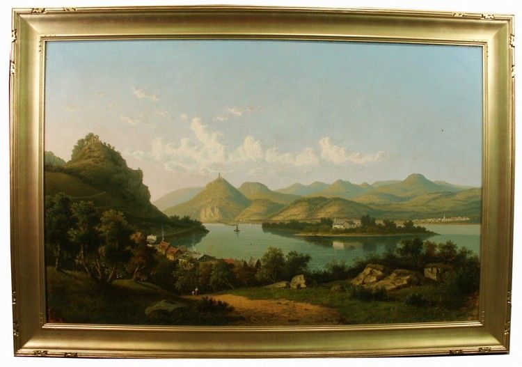 LAKESIDE VILLAGE IN A MOUNTAINOUS LANDSCAPE