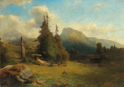 | Mountain Landscape with Resting Hikers | |
