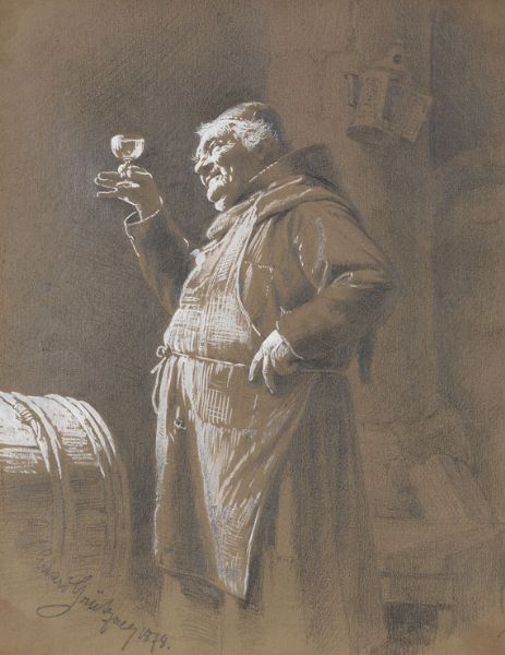 Bruder Kellermeister bei der Weinprobe