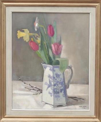 tulpaner och påskliljor i kanna