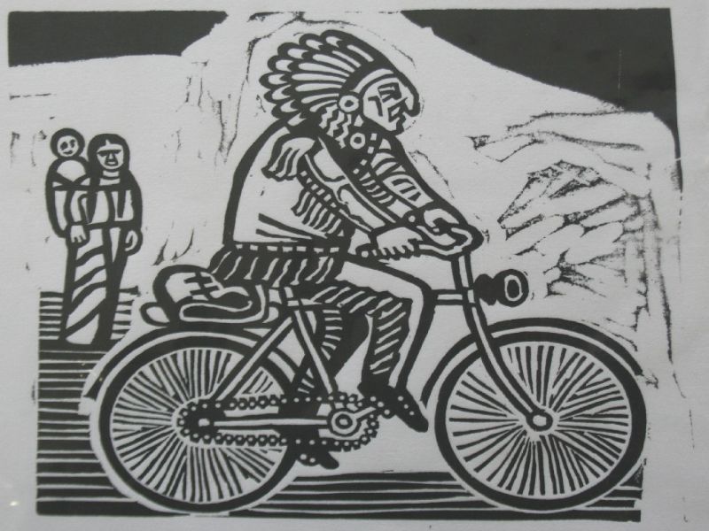 NATIVE AMERICAN INDIAN ON A BICYCLE