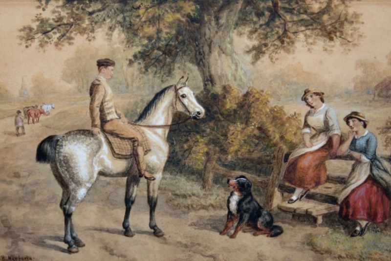 Man on Horseback with Dog and two Ladies by a Stile