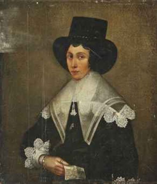 | Portrait of a lady, half-length, in a black dress with lace cuffs, a black hat and pearl earrings, a letter in her right hand | |
