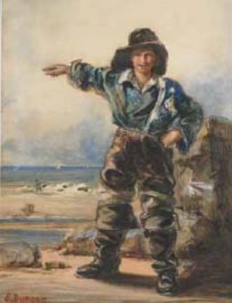 YOUNG CLAMMER SIGNALLING THE INCOMING CATCH;