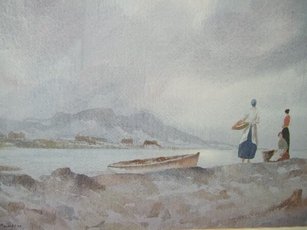 Fisher Folk' study of female figures on mountainous coastal landscape