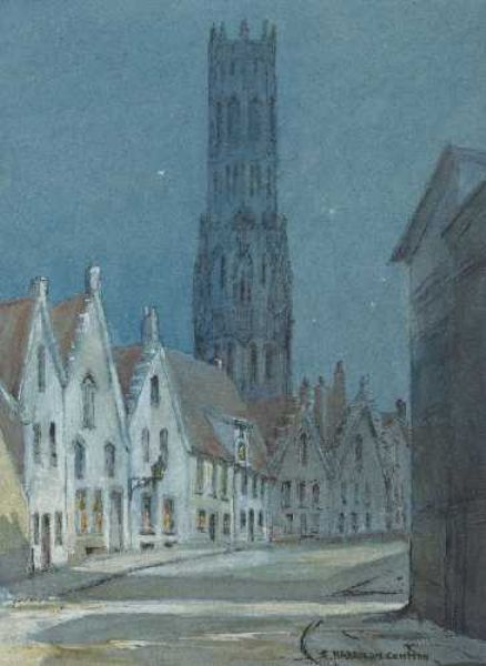 Nächtliche Straße in einer mittelalterlichen Stadt
