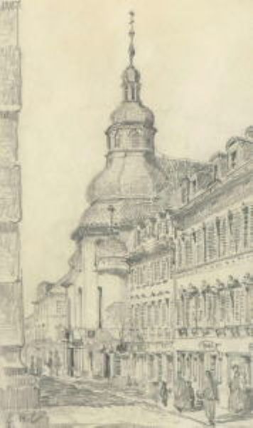 Straßenzug mit barocker Kirche