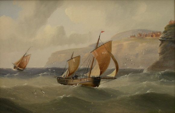 Whitby Fishing Boats off Robin Hoods Bay and a companion view
