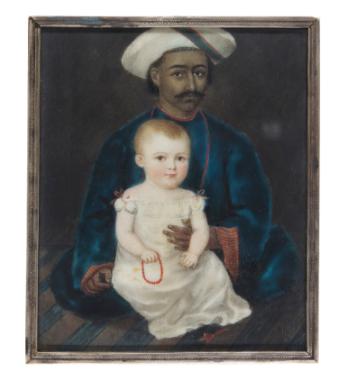 | PORTRAIT OF MRS CHARLES TUCKER, WHEN A CHILD, SEATED IN THE LAP OF AN INDIAN SERVANT | |