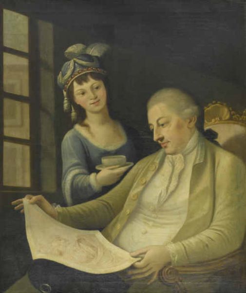 | Gentleman in an Armchair, being served tea by a young maid | |