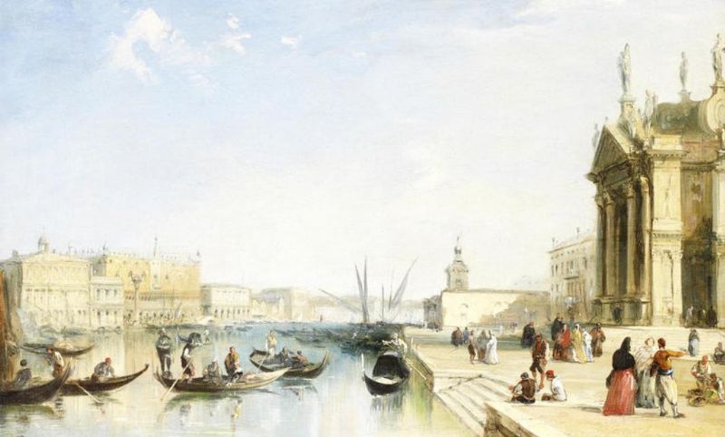 | The Riva degli Schiavoni and Bacino di San Marco from the steps of St. Maria della Salute; Distant view of San Giorgio Maggiore | |