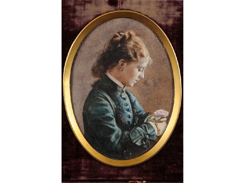 | Sweet Thoughts; portrait of a young girl half-length, a rose in her hand | |