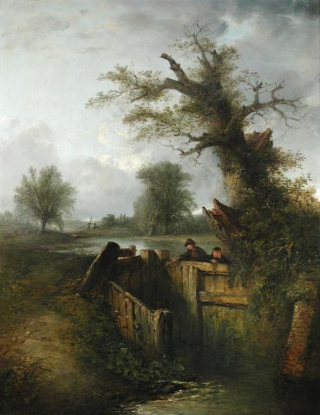 Boys at a sluice gate