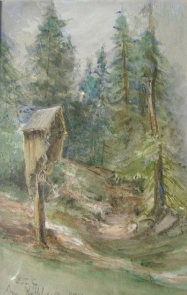 Am Kühleck. Im Passepartout unter Glas gerahmt.