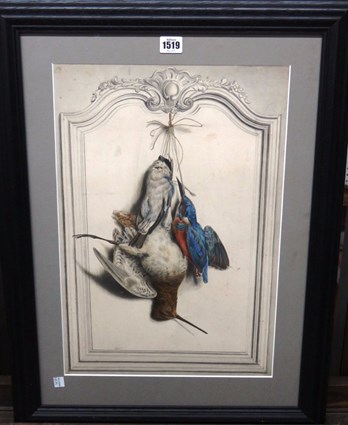 | Trompe l'oeil with bullfinch, kingfisher and snipe | |