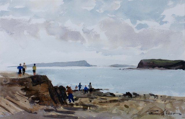 Figures standing on the shore
