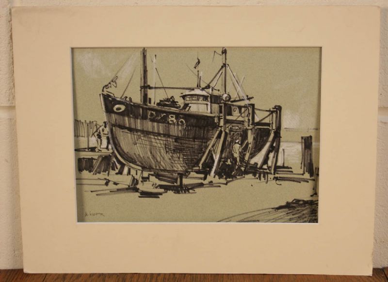 View of a Boat in a Dry Dock, pen and ink heightened with white