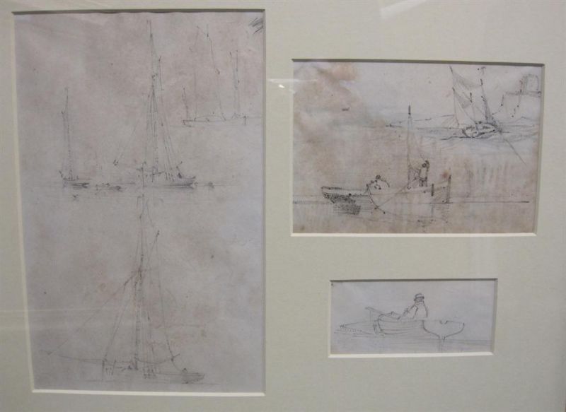 Three pencil studies of Boats (mounted in single frame)