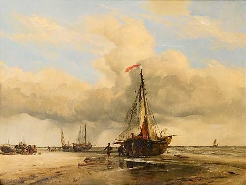 | Dutch trawlers drying their sails and nets on the beach at Scheveningen | |