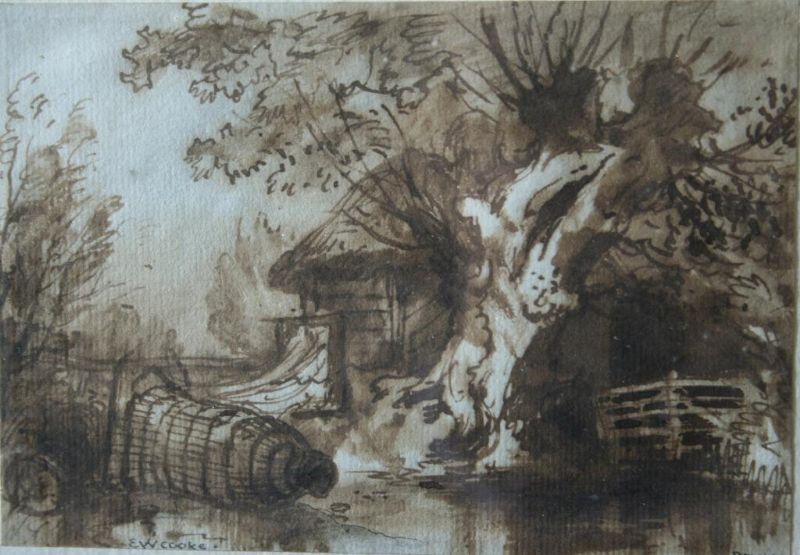 | SKETCH OF EEL TRAP BY A COTTAGE | |