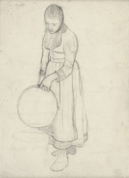 Sketch of a woman emptying a pail