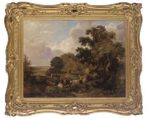 Figures and cattle on a country road