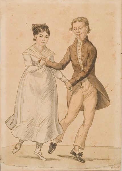 | The illustration depicts a young couple dancing, the gentleman appearing to have a sly smile on his face. | |
