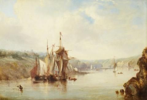 CASTLE ... CO. CORK (WITH FISHING BOATS AT REST IN A NARROW HARBOUR)