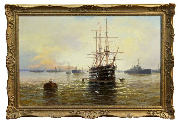 | H.M.S. Victory at Portsmouth, with shipping beyond | |