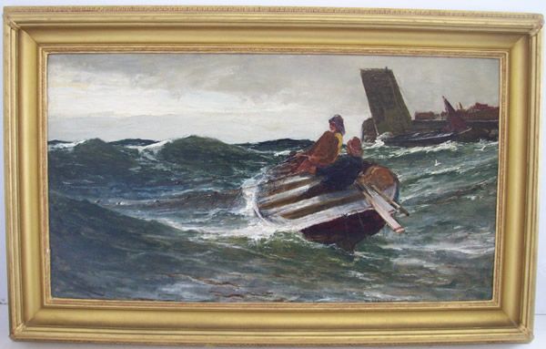 Fisherman Hauling the catch in a composition gilt frame, circa 1890