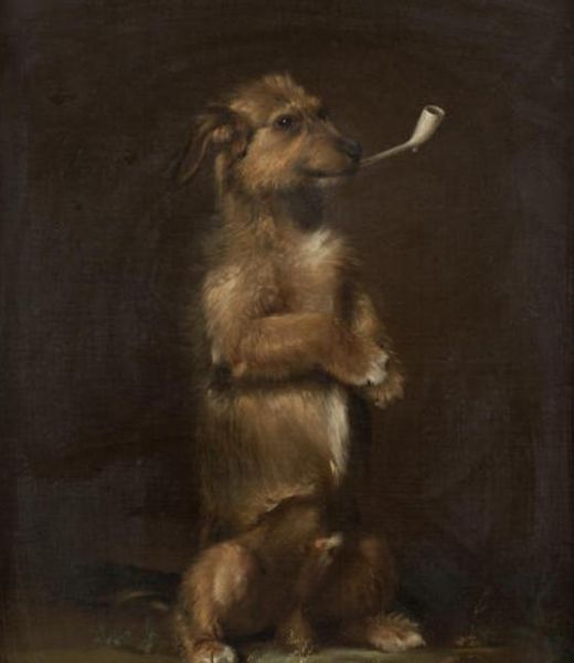 A dog with a pipe