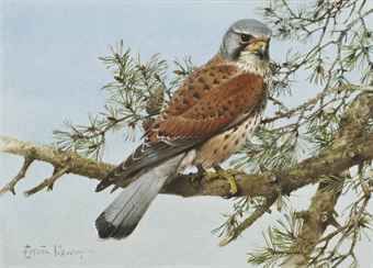 Male kestrel; Little owl; and Blue tits on pyracantha