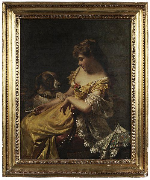 Woman With Letter and Her Dog