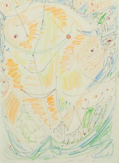 | Ink and oil pastel on paper | |