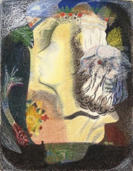 | Pencil crayon, black ink and oil, unframed, 2 items | |
