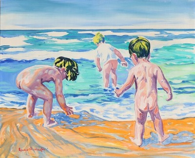 Composition with bathing children.