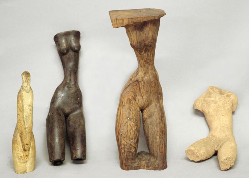 Sculpture 4 items,One bone, two carved wood, and one composite