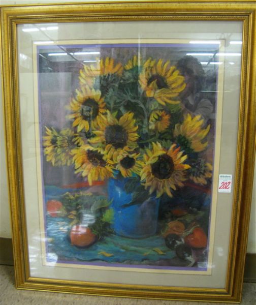Still life with sunflowers and fruit