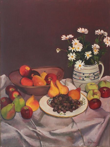 Still Life with Fruit and Daisies on a Table