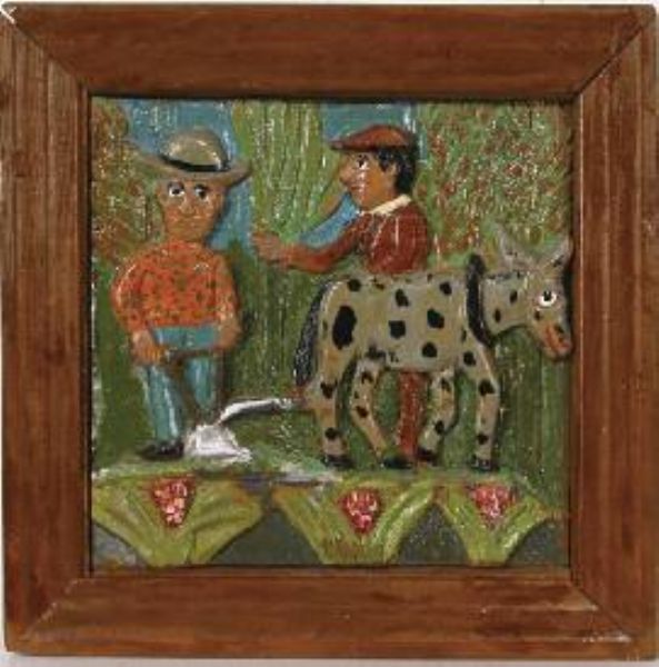 Painting carved wood, framed