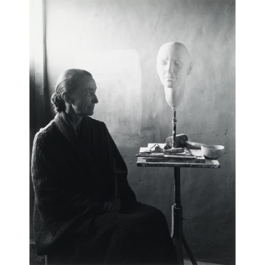 | Georgia O’Keeffe with bust by Mary Callery, Ghost Ranch, NM | |