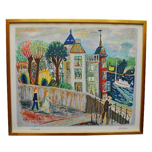 | Motiv av byggnader, promenerande människor och Vaxholmsbåt. Märkt "Provtryck". | |