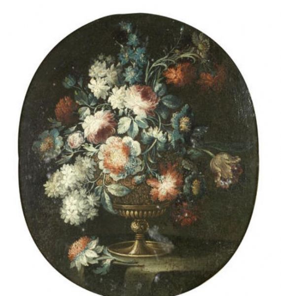 | Roses, a tulip, chrysanthemums and other flowers in a bronze urn on a stone ledge; and Roses, narcissi, chrysanthemums and other | |