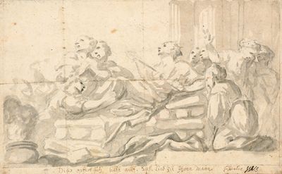 | Brush and grey ink, over traces of stylus, on paper, black framing lines | |