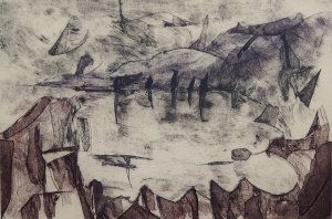 Drypoint etching with aquatint printed in colours