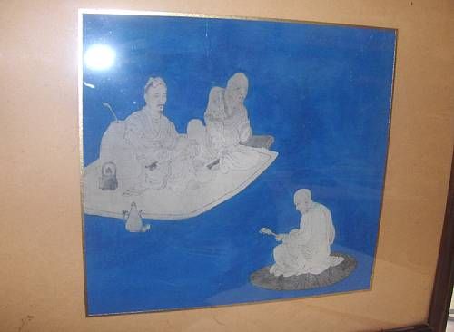 Chinese figure studies on a blue ground