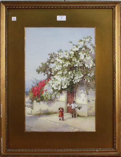 '86, Daturas' (Two Children on a Street below the Flowering Plant)