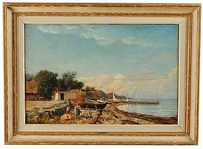 kustlandskap med figurer på strand