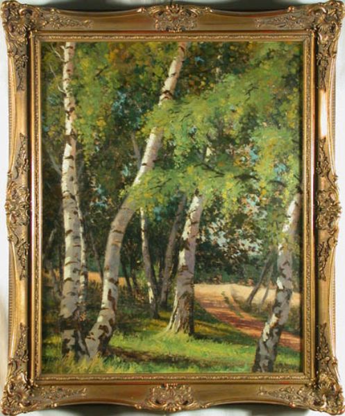 Fahrweg durch einen lichten Birkenwald